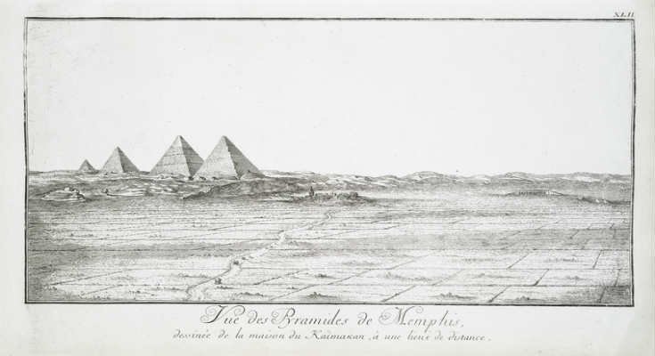 Според Норден четвъртата Велика пирамида е направена от черен камък, който има същата висока здравина като гранита. Фредерик написа, че главните пирамиди се намират на югоизток и изток от Гиза и има тъкмо четири от тях. Наблизо са подредени дребни пирамиди, които не значат нищо спрямо Великите. Черната пирамида съгласно Норден е имала височина повече от 150 метра. Вътре в нея не е имало гробници и храмове, само че този монумент е значим с други свои характерности.