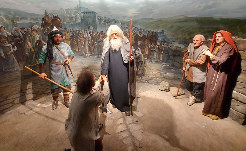 По думите му най-разтърсваща е сцената, която пресъздава прощаването на партриарх Евтимий с народа. Турският султан Баязид заповядва да бъде посечен, само че ръката на палача изсъхва в мига, в който замахва към българския патриарх гласи легендата, споделя доктор Църов. Така партриарх Евтимий е опрощение и изпратен на изгнание в Бачковския манастир, където умира, добави той.