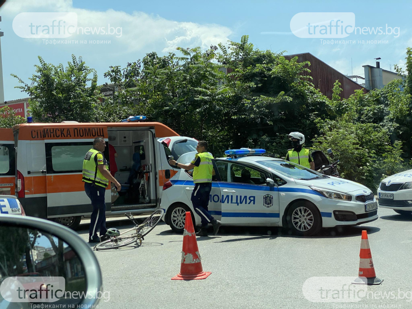 Велосипедистът е със пострадвания и ще бъде откаран с колата за спешна помощ за в допълнение лекуване.