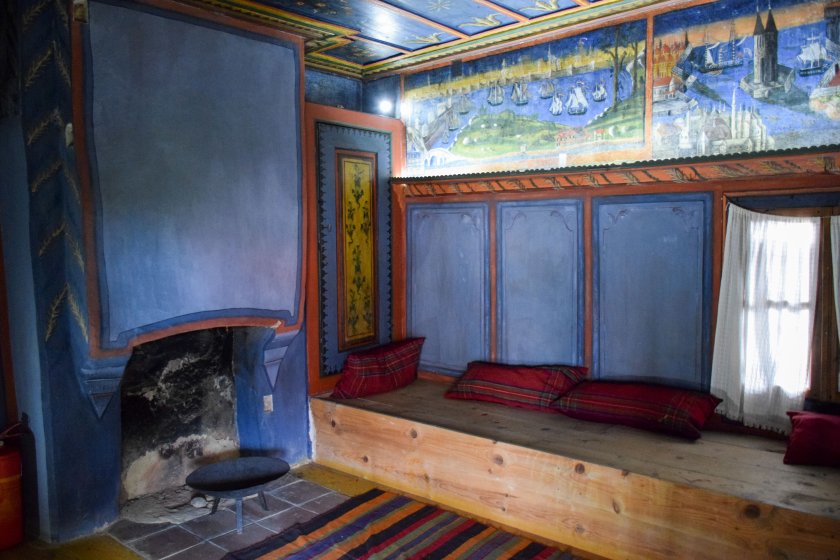 Къщата впечатлява със своите размери. Изрисувани са външните стени, а едно от първите неща, които виждат посетителите, е красиво резбования дървената розетка на просторния чардак.
