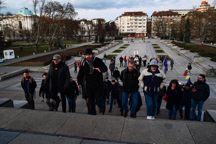 След 19 ч. протестиращите се разотидоха, само че всички венци и букети бяха изхвърлени в кофа наоколо до монумента.
