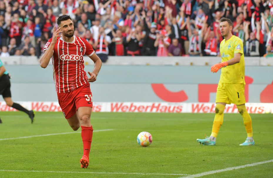 Численото преимущество на Фрайбург се материализира в голове след почивката, вкарани от Лукас Кюблер (56‘) и Винченцо Грифо (80‘-дузпа).