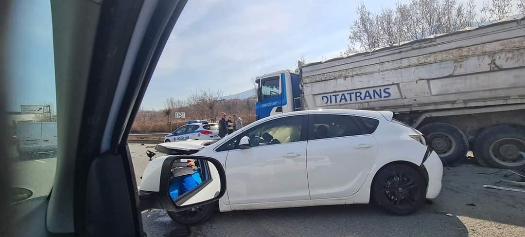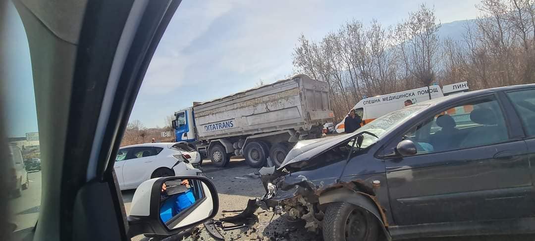 Сблъсъкът е сред три автомобила и един камион, оповестиха от полицията.