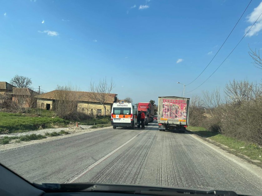 Верижна злополука сред два товарни и един лек автомобил затруднява придвижването по пътя Русе - Велико Търново в региона на село Поликраище.
