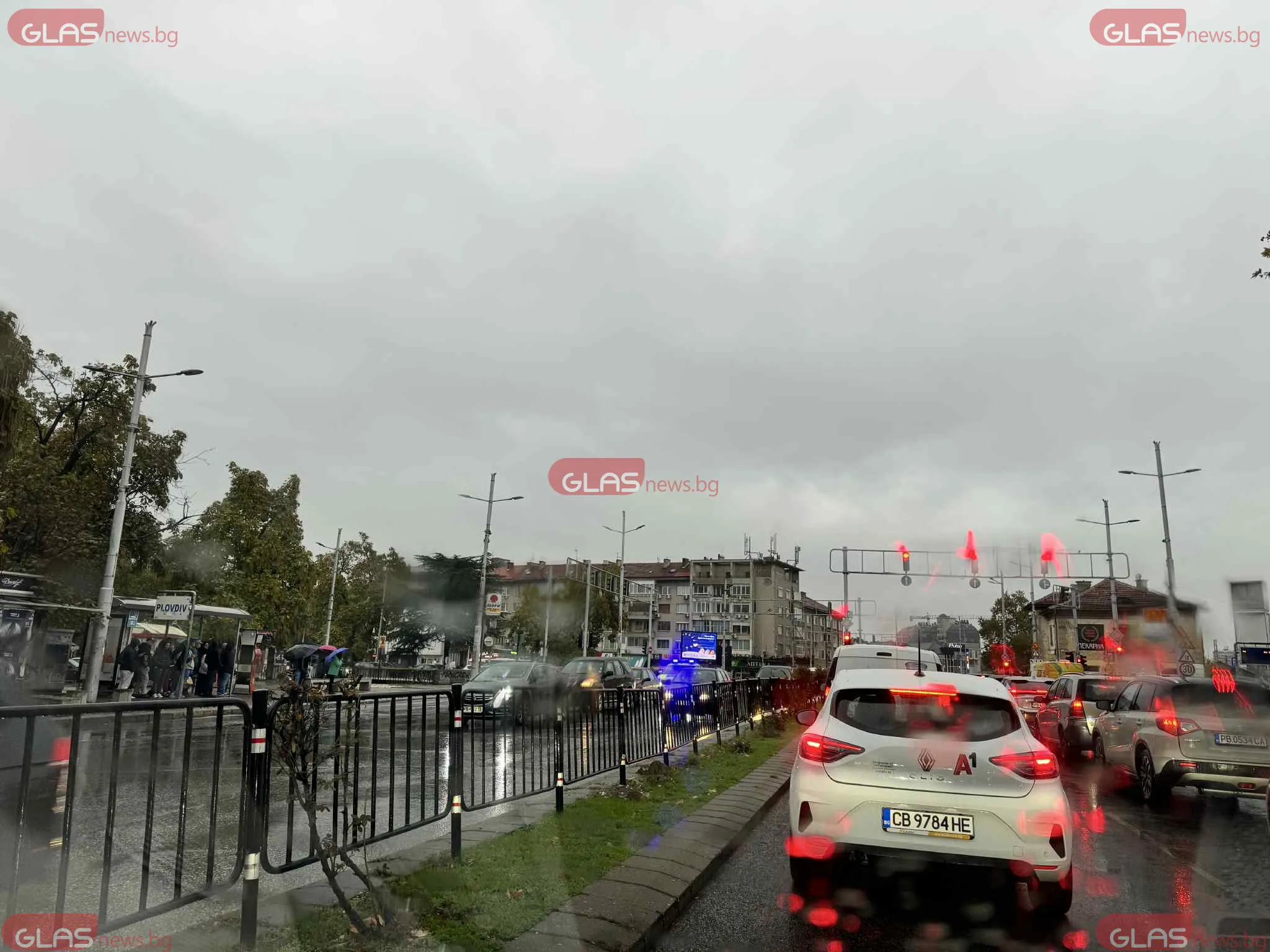 Верижна катастрофа на централен булевард в Пловдив СНИМКИ