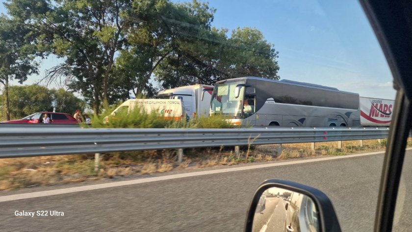 Заради злополуката обаче се образува голяма колона от коли, до преди час е над 7 км. На място има полиция.