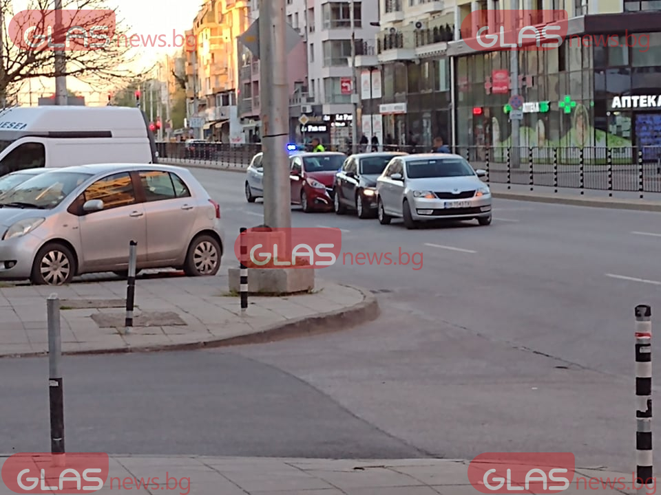 Ударът е станал в междинната лента, към този момент повода не е ясна. На място има екип на КАТ. Движението не е затруднено. Колите към този момент са преместени в дясната лента.