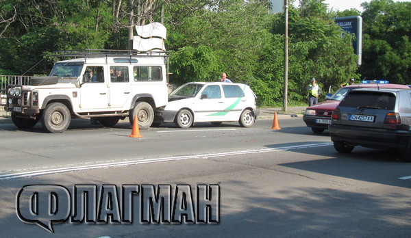 Верижна катастрофа блокира бургаски булевард, очукан голф се натресе във фирмен джип на еколози