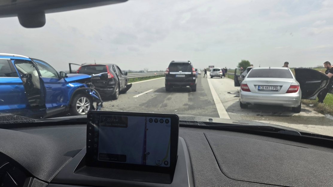 Верижна злополука затруднява придвижването по автомагистрала " Тракия " в региона на 144-ия километър в посока Бургас, разбра