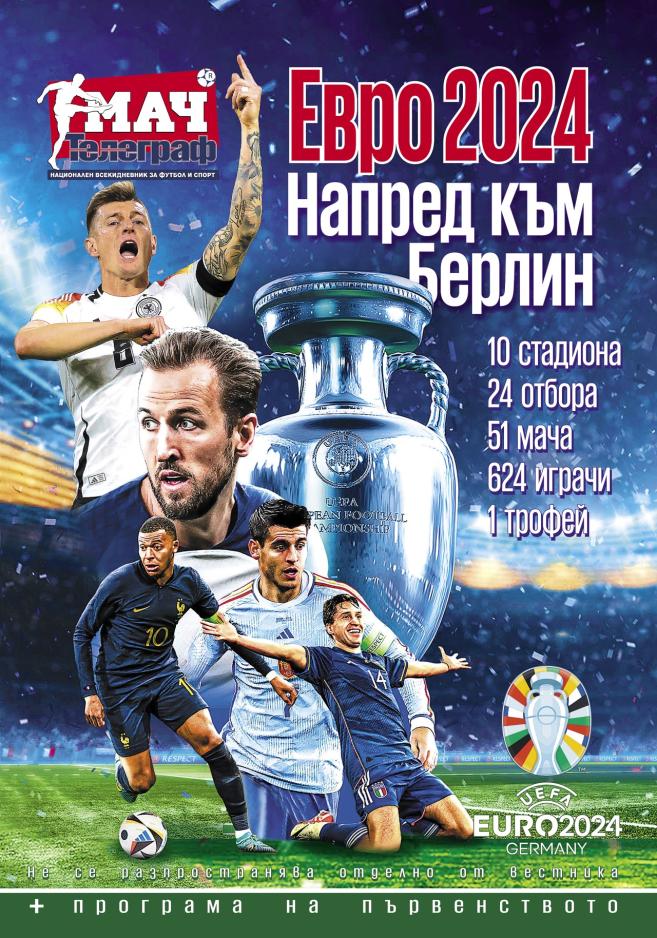 Луксозната брошура „ УЕФА ЕВРО 2024 – Напред към Берлин! “ с вестник „ Мач Телеграф “ ще бъде опакована в плик на цена единствено 2.49 лева и ще се продава в комерсиалната мрежа единствено на 13 юни.