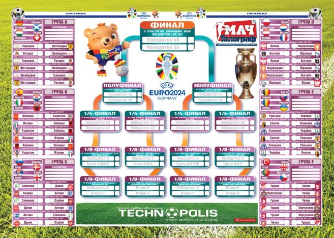 Всеки ден в.„ Мач Телеграф “ ще ви осведоми за всичко най-значимо на събитието на годината. Модерната графика на всекидневника, богат снимков материал, богата и забавна статистика, последни вести, резултати от мачовете, изявленията, любопитни обстоятелства, кавги – всичко това може да намерите във вестника от 14 юни в специфичното ни приложение УЕФА ЕВРО 2024.