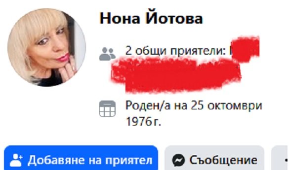 За да не остане по-назад от именитата си колежка, някогашната алена депутатка и кралица на бездарното блеене Нона Йотова също реши да си редуцира малко от трудовия и житейски стаж. Блондинката обаче безочливо и непосредствено си отряза не 3-4 годинки от ЕГН-то, а цели 10. Да, във всички обществени прежи Нонка попада с рождена дата 25.10.1976 година, когато в действителност е родена през 1966-а.