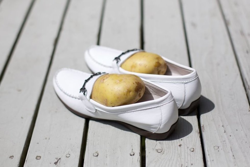 Вземете картоф, обелете го, увийте го във вестник и го пъхнете в обувките си . Оставете го там за 10-12 часа. През това време картофите ще отделят влага, която ще попие по стените на обувката и ще я разшири.