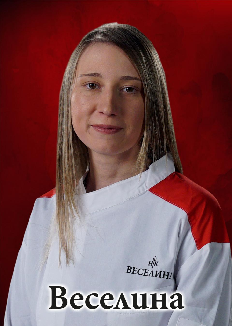 Веселина e на 24 години, от София. Живяла е известно време в Чикаго. В момента работи като готвач студена кухня в ресторант в София. Определя себе си като притеснителна, положителна, с възприятие за комизъм. Мечтата й е да бъде началник със звезда Мишлен.