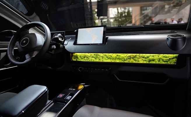 Интересна характерност е опцията за в двете посоки зареждане, което ще рече, че автомобилът може да се трансформира в мобилна зарядна станция с мощ до 2,7 kW. Ще се поддържа опция за бързо зареждане, само че нищо по тематиката не се оповестява от компанията. В арматурното табло пък е вграден специфичен мъх който спомага за пречистване на въздуха.