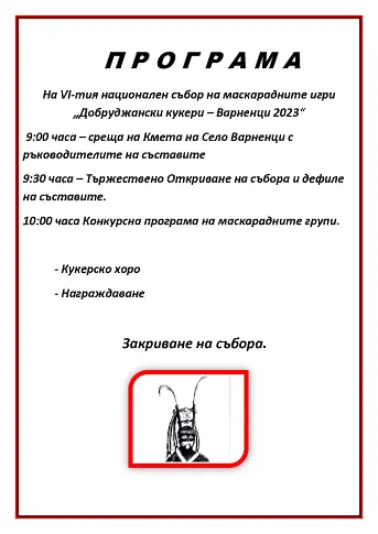 VI-ият неционален събор на маскарадните игри „ Добруджански кукери – Варненци 2023 “ ще се организира на 4 март, в с. Варненци, на централния площад.