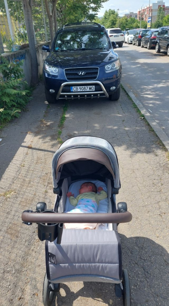 Бебе. Спящо, нежно, беззащитно. Символ на бъдеще, непорочност, нов живот. Срещу него – джип. Паркирал със самочувствието на танк.