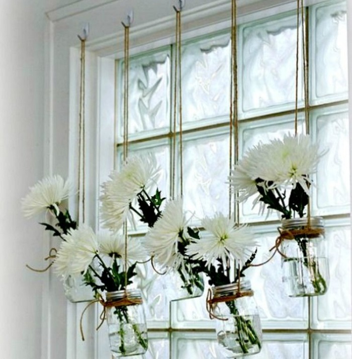 3. Висящи вази за цветя на прозореца: това знамение се случва с помощта на пластмасовите закачалки!