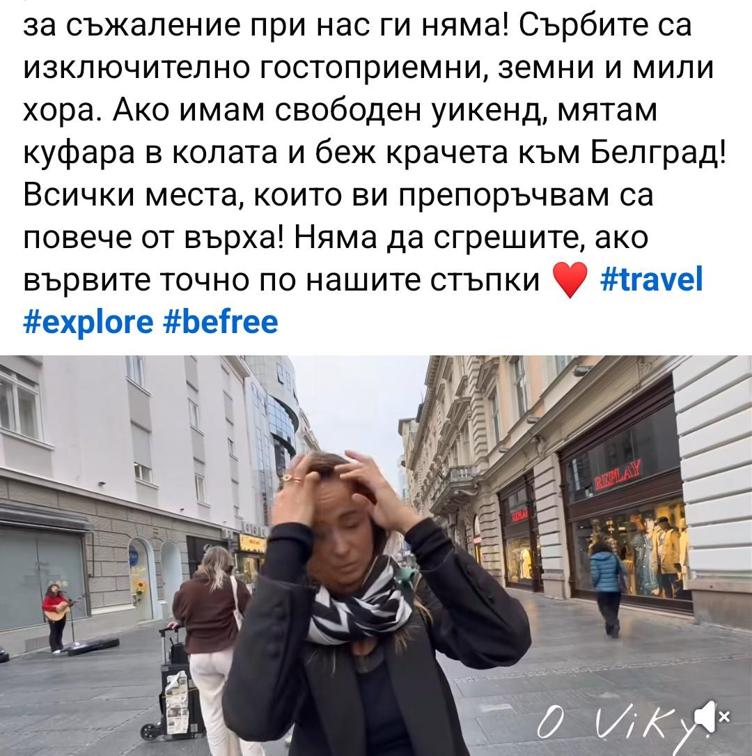 Вики Терзийска си подари един щур уикенд в Белград. Певицата обиколи фамозните кафани на сръбската столица, само че един от тях я впечатли, написа България Днес.