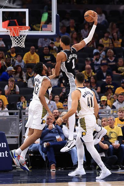 Виктор Уембаняма още веднъж блесна с впечатляващ миг по време на предсезонната контрола на Сан Антонио Спърс против Индиана Пейсърс.
