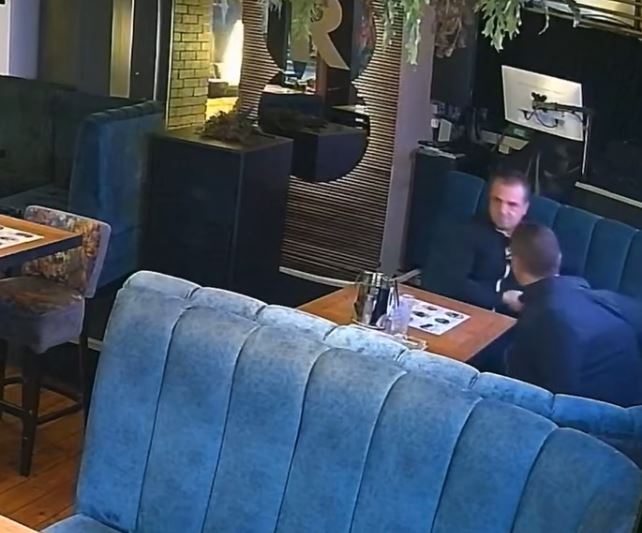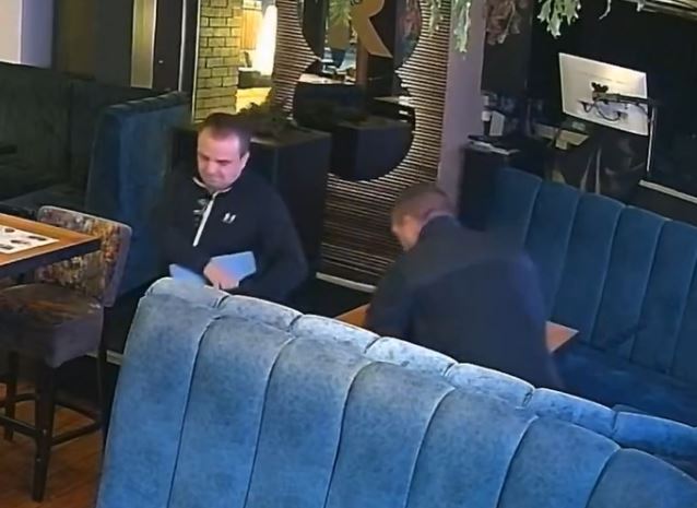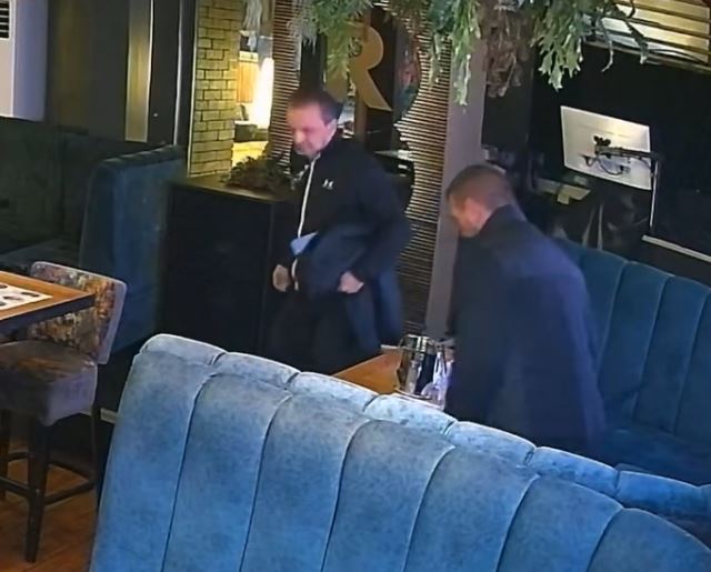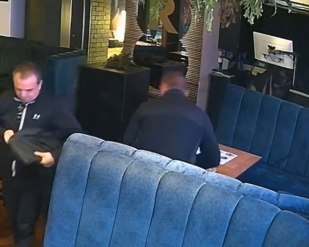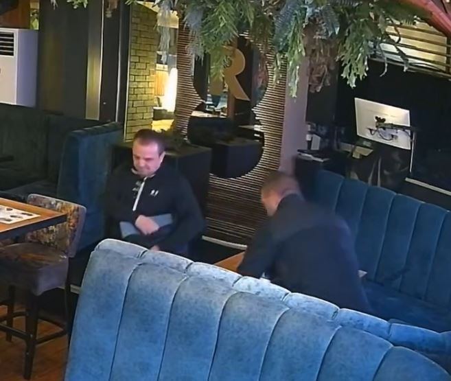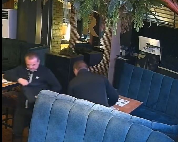На записа се виждат двама мъже, които седят на една от масите в обекта. Те стават и потеглят, като в ръцете си единият от тях държи и предмет, наподобяващ съвсем на изчезналата движимост. Прави усещане фактът, че мъжа като че ли крие предмета.