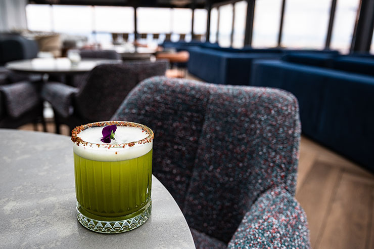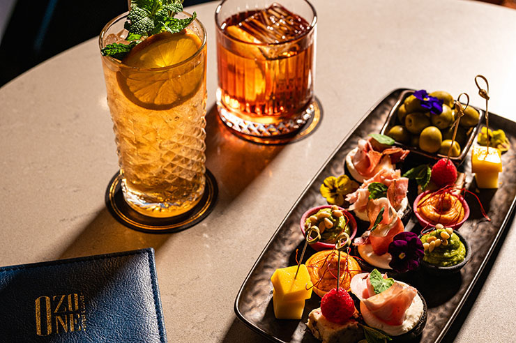 Високо над града, на върха на, трансформира всяка вечер в сцена за удоволствия. Тук небето се среща с хоризонта, а коктейлите описват истории, които остават дълго след последната глътка.В центъра на всичко е барът, където екипът от миксолози основава авторски коктейли, които носят темперамент, финес и личен почерк. Менюто е същинска лаборатория на усетите – от изтънчени и деликатни композиции до дръзки, пикантни изненади. Сред акцентите се открояват изящният OMOTENASHI VOL.2 с японски джин, проличава и саке, както и провокативният SPICY GREEN SOUR, където текила, матча и пикантни нотки се преплитат в освежаваща естетика.
