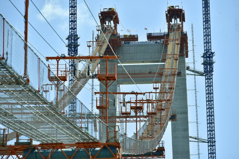 Строежът на оборудването стартира през 2017 година В построяването му са употребявани близо 81 000 километра стоманени въжета, а общото тегло на двете съществени въжета е 6700 тона. 86 железни сегмента с общо тегло 20 800 тона образуват пътното платно, а всеки от тях тежи по 250 тона.