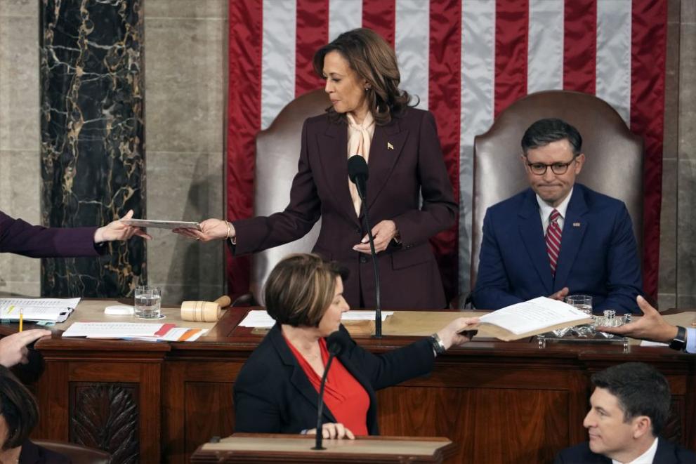 Тя си завоюва място в късия лист на вицепрезидентите, председателствали церемониалното потвърждаване на изборната си загуба, показва АП. Ричард Никсън го прави след загубата си от Джон Ф. Кенеди през 1960 година. Ал Гор е идващият, откакто Върховният съд на Съединени американски щати взема решение резултатът от изборите през 2000 година в интерес на Джордж Буш-младши.