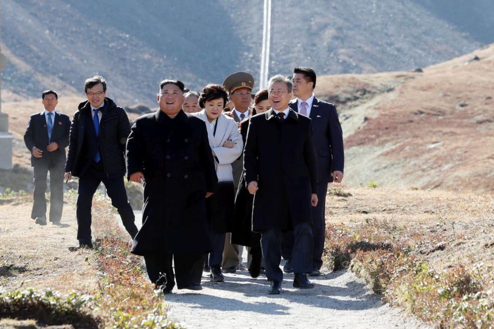 Романтичната разходка на Ким и Мун до свещения връх Пекту