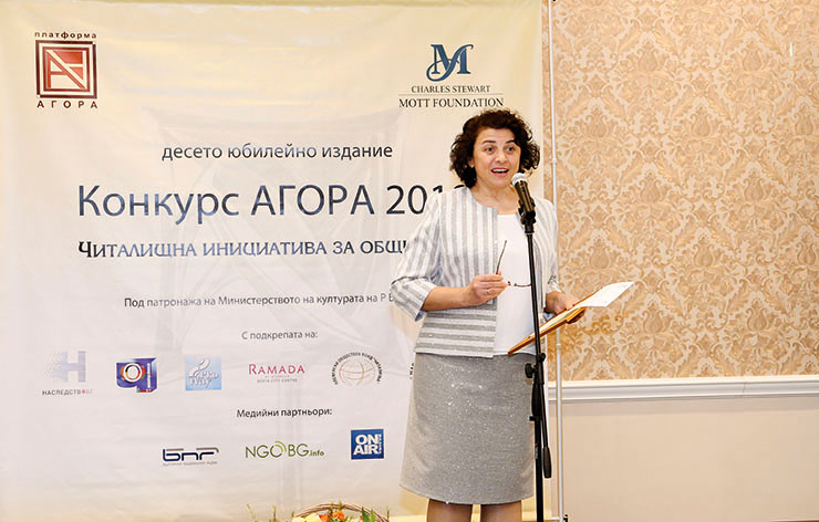 С АГОРА изградихме мрежа от 150 читалища с разнообразни възгледи, умения, потенциал и вероятности в цялата страна. Коя беше първата ви идея? Една от първите беше Конкурсът АГОРА. Направихме го през 2009 година и се разви в годишен и народен. Има към този момент 13 издания, в които са взели участие 545 читалища. 65 от тях са достигнали до край и 17 са победили и са станали носители на премията АГОРА. Наложи се като „ читалищните Оскари “. Насърчава дейните, новаторско мислещи и общностно ангажирани читалища да търсят нови благоприятни условия и вероятности за развиване на своите общности. Номинира сполучливи читалищни начинания, сполучливо осъществени в миналата година в категориите „ Общност в развиване “, „ Солидарност и човечност “, „ Изкуство и просвета за развиване “, „ Перспективи за израстване “, „ Най-продуктивно партньорство “. Те се правят оценка от 9-членно жури, което избира финалистите в петте категории. Финалистите показват самодейността си на церемонията и онлайн присъстващите избират от петте финалиста спечелилия в състезанието и притежател на огромната премия за миналата година.