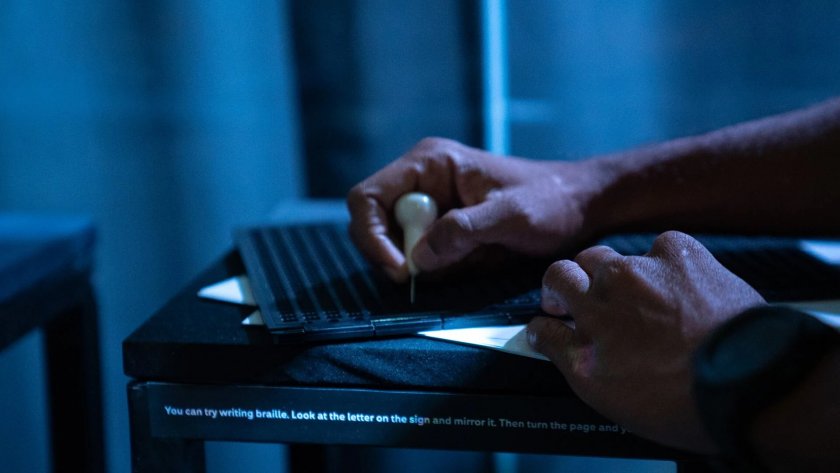 Посетителите са поканени да провокират съзнанието си, като ангажират сетивата си по нетрадиционен метод – посредством проучване на брайловата книжовност, слушане на музика чрез трептения, другарство посредством ръчна писменост и разчитане и комбиниране на усет и досег.