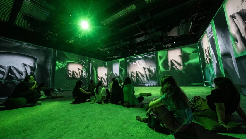 За хората със слухови нарушавания, на входа, дребен екран със светлинен сигнал, притегля вниманието им и ги осведоми за опциите за достъп, които са налични за оптимално прекарване на изложбата - листовка с информация за участниците, надписи към прожекцията, сензорна жилетка, обвързвана със звука на прожекцията, за по-пълно потапящо преживяване.
