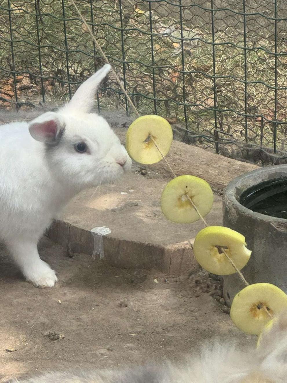 Вкусни лакомства получиха зайчетата от варненския зоопарк. От зоологическата градина разгласиха фотоси на животинките, които хапват с вкус от ябълка от гердан.