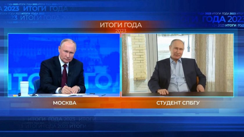 По време на конференцията онлайн от родния град на Путин - Санкт Петербург се включи мъж, който наподобява едно към едно на президента и който приказва с неговия глас. Мъжът се показа като студент от Санктпетербургския държавен университет, без да каже името си. Той зададе въпрос на президента дали е правилно, че има доста двойници и какво мисли за изкуствения разсъдък.