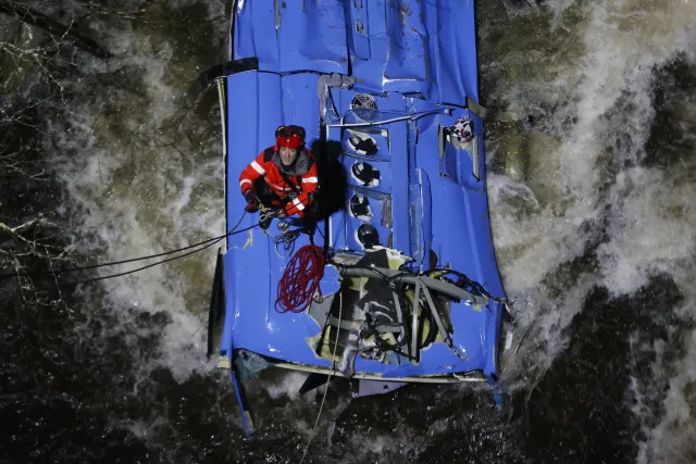 Според публични представители евентуалната причина за злополуката е неприятното време. Службите за незабавна помощ са били известени за случая първо от преминаващ водач, който им споделил, че част от мантинелата на моста липсва. Само няколко минути по-късно един от оживелите им се обадил от рейса и съобщил, че транспортното средство бързо се цялостни с вода.