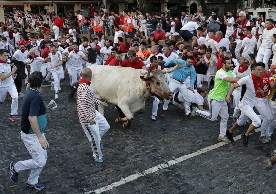 Какво съставлява атракцията? Хиляди хора, множеството облечени в обичайна бяла риза и панталони с червен пояс, се пробват да избягат от преследващите ги животни в тесните калдъръмени улички. Вчера надпреварата е траяло 2 минути и половина, и е третото от общо осем планувани в границите на фестивала. При първите две е нямало прободени от биковете, само че е имало хора с пострадвания от рухвания и подхлъзвания.