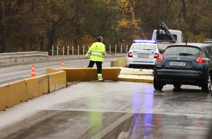 Автомобилът евентуално се е врязал в разграничителните панели на бул. Никола Вапцаров, тъй като три от тях са съборени и напукани.