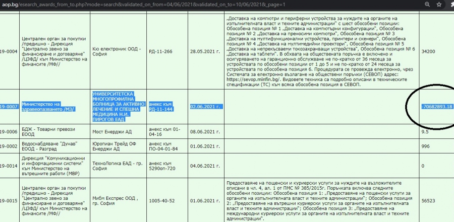Вместо повишен с 300 хиляди лв. контракт, от Министерството на здравеопазването го рапортуват понижен с близо 70,7 милиона лв.. Грешката въобще не е техническа, а фактическа. Повтаря се задоволително доста пъти в документите по една социална поръчка. И в последна сметка по този начин е докладвано пред Агенцията за публични поръчки.