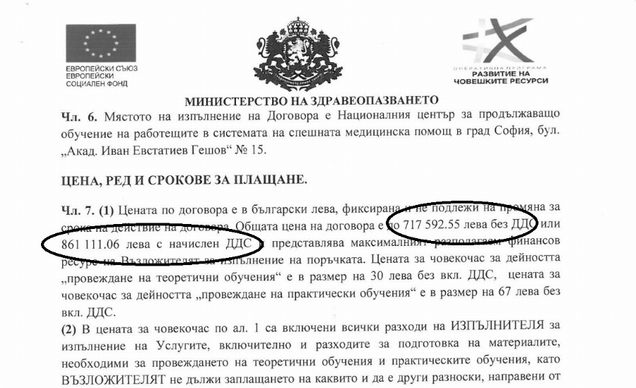 През февруари 2019 година Министерство на здравеопазването афишира поръчка за Избор на преподаватели за осъществяване на образования за личния състав на центровете за незабавна здравна помощ и незабавните отделения. Прогнозната стойност е 717 592,55 лв. без Данък добавена стойност (Б. р. - преднамерено оставяме и стотинките след десетичната запетая, тъй като тя след това се оказва съдбовно важна).