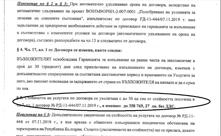 Стойността на контракта се усилва с до 358 769,27 лева без Данък добавена стойност. Тоест, общата му стойност към този момент възлиза на 1 076 361,82 лв..