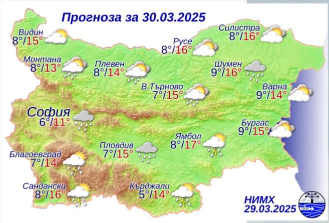 Черноморието Над Черноморието ще има забележителна облачност, само че ще бъде съвсем без превалявания. Ще духа слаб вятър от изток. Максималните температури ще бъдат сред 11° и 14°. Температурата на морската вода е 8°-9°. Вълнението на морето ще бъде 1-2 бала.