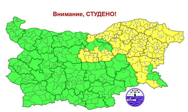 Температурите от тази седмица са най-ниските у нас от началото на този зимен сезон, само че той още не е завършил, сподели за Българска телеграфна агенция Марияна Попова - синоптик от отдела " Метеорологични прогнози " на Националния институт по метеорология и хидрология (НИМХ). За 22 февруари, Национален институт по метеорология и хидрология издаде предизвестие от първа степен - жълт код, за студено време в 19 области от страната.