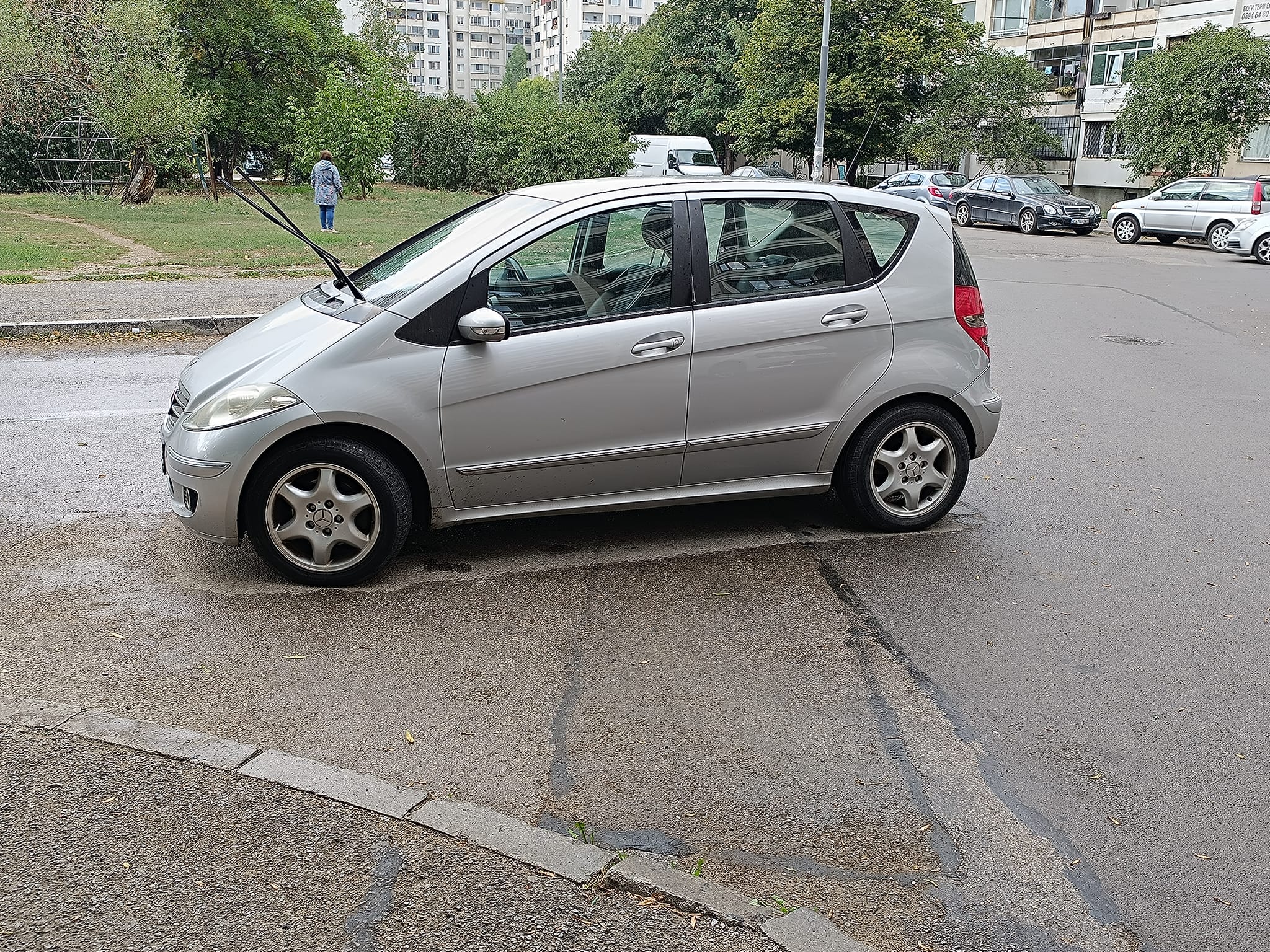 Заради неправилното паркиране, чистачките на автомобила са вдигнати, само че това едва ли ще трогне водача.