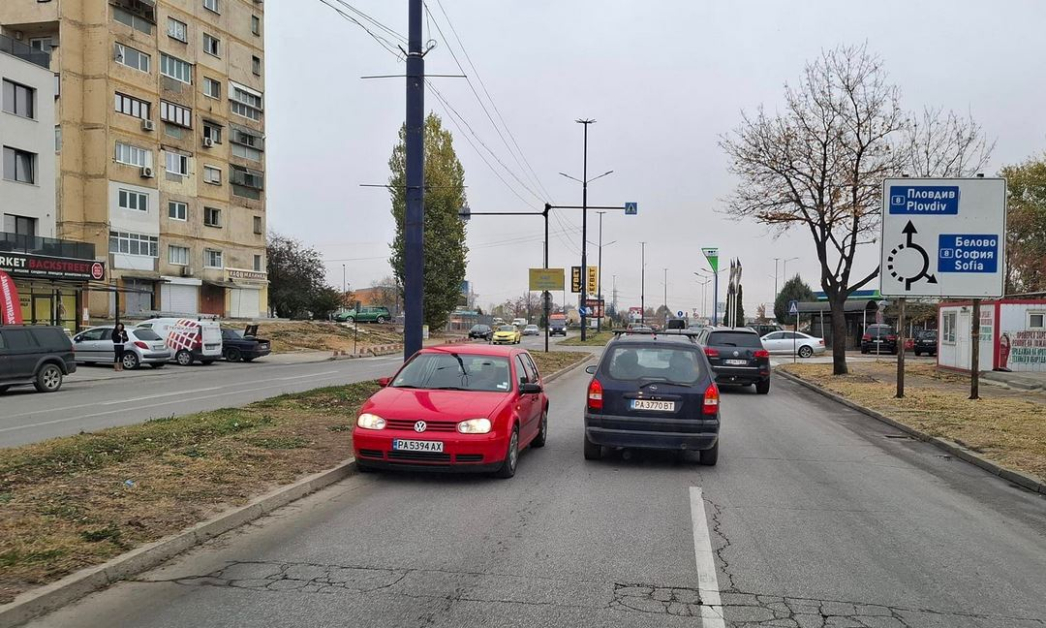 Водач с червен " Голф " сътвори рисково нарушаване на основна пътна артерия в Пазарджик.