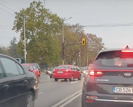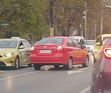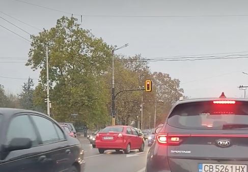 Шофьорът с червен " Шевролет " изчаквал на червен светофар, само че в насрещното, а на публикуваните фрагменти се вижда по какъв начин останалите коли заобикалят возилото. Ситуацията се разиграла в на " Цариградско шосе " към 8 часа сутринта.