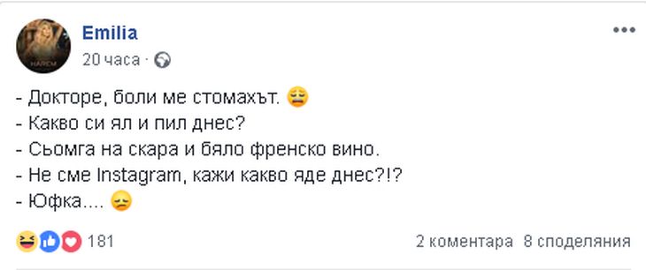 Сега ще ви споделим бруталният анекдот, който реши да показа с другари и почитатели едно от най-известните лица на Нова телевизия. След като качи вица си, той се появи по профилите на още десетки известни персони, измежду които даже поп фолк певицата Емилия.