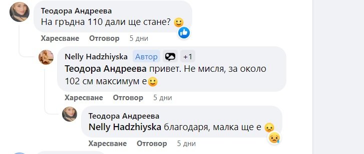 Водещата на предаването „ Търси се ” – Нели Хаджийска, оповести какъв брой тъкмо е гръдната й обиколка. Блондинката постоянно продава дрехи в група във фейсбук, където бе запитана дали предлаганата от нея рокля ще стане за гръдна обиколка от 120 см, видя Lupa.bg.