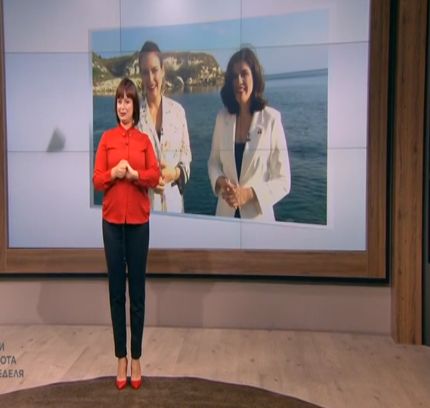 Малко по-късно двете й колежки бяха пуснати в ефир. Те споделиха, че през вчерашния ден доста е валяло, само че за благополучие в този момент времето е хубаво и могат да се включат непосредствено от плажната линия.