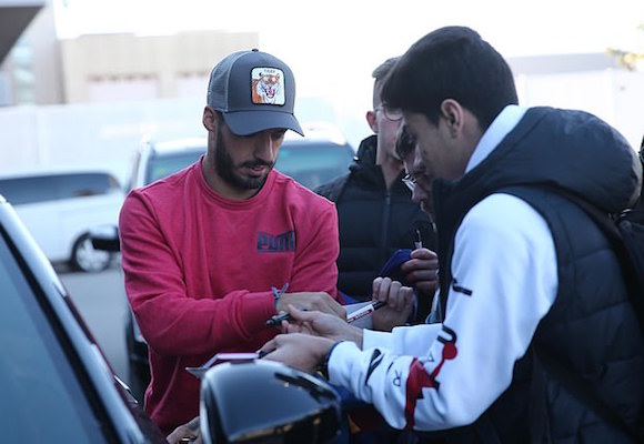 На летище “Ел Прат” те бяха посрещнати от група ентусиасти, които съумяха да сив земат подписи и да се снимат с тях. Тази вечер нападателите ще упражняват със съотборниците си.
