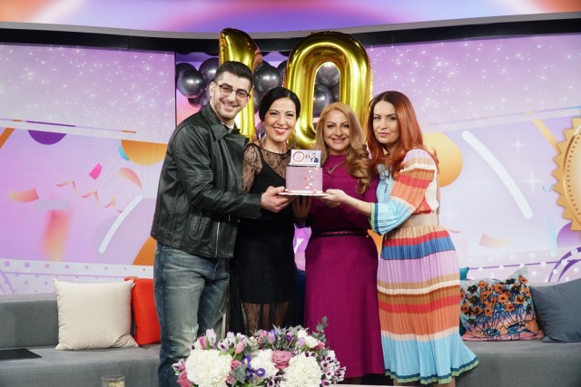 Водещите на " " Меги Димчева и Нели Хаджийска гостуваха в студиото на " Преди обед " във връзка 10-ия рожден ден на предаването.